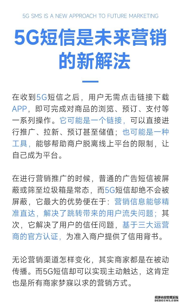 從目前的市場來看,5G短信顯然是一個截然不同的存在,它不僅僅是一條短信,更像是一個集成入口,可以嵌入文字、圖片、視頻甚至鏈接等功能性組件,用戶點擊的同時即可獲得深度互動。