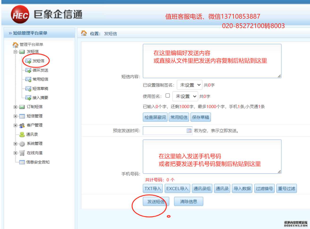 另外,如果要對很多人發(fā)布會(huì)議通知、發(fā)布資訊,應(yīng)用短信群發(fā)平臺(tái)來發(fā)布是一個(gè)非常簡便的方式,登錄sms.hechina.cn免費(fèi)注冊一個(gè)專用賬號(hào)后聯(lián)系巨象短信平臺(tái)客服微信13710853887開通即可。
