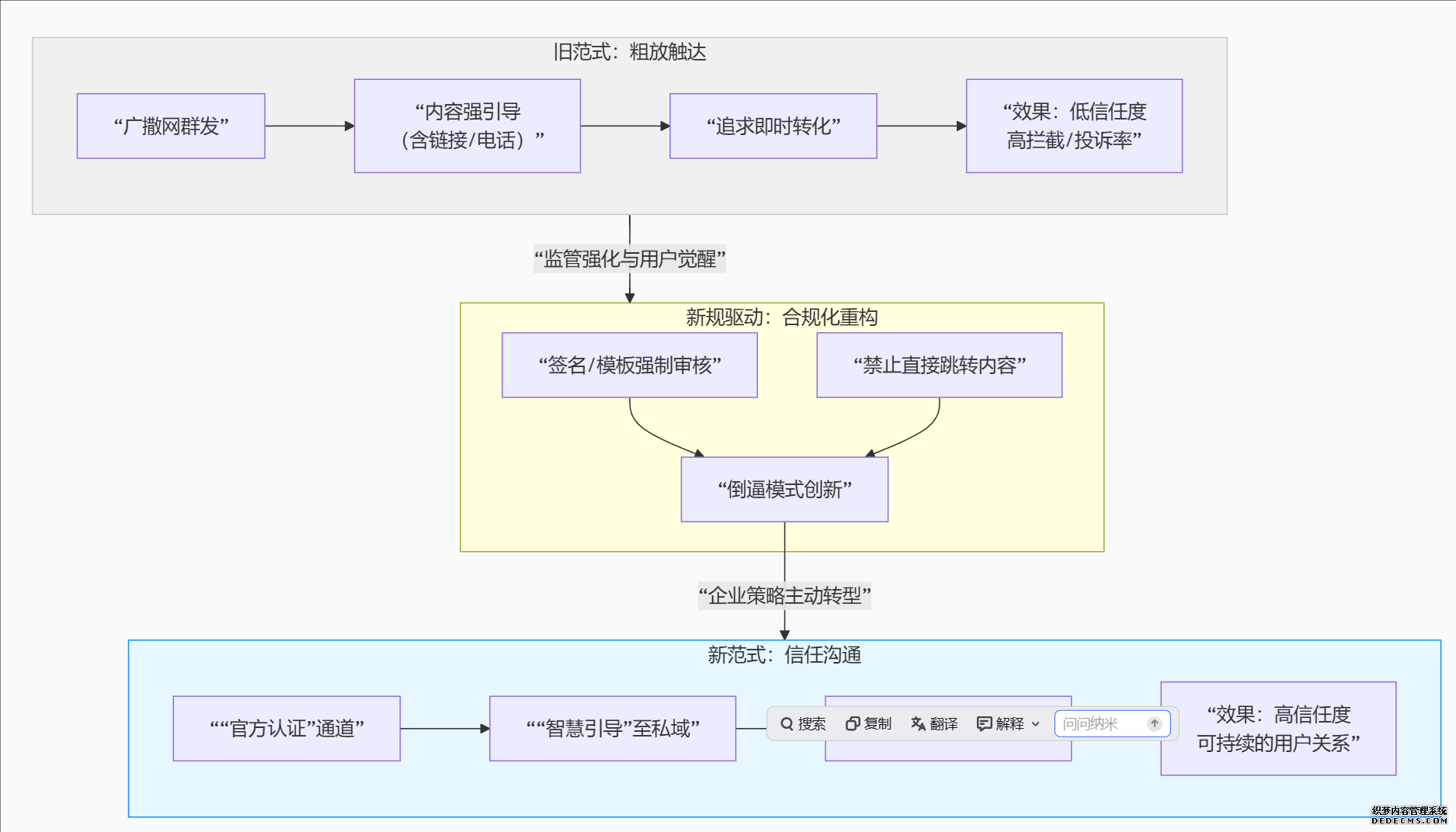 禁止鏈接與直接聯系方式的新規,看似斬斷了傳統的轉化路徑,實則倒逼企業進行更精細化的用戶運營。營銷的核心從“即時轉化”遷移至“關系培育”。企業需設計全新的引導話術,例如: